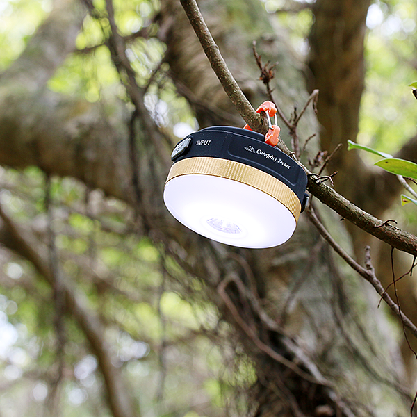 露營燈有四段式照明模式供自由切換,此外還內建強力磁鐵,可牢牢吸附在金屬表面,在沒有掛勾地方仍可使用,充電一次可以照明六小時之久!