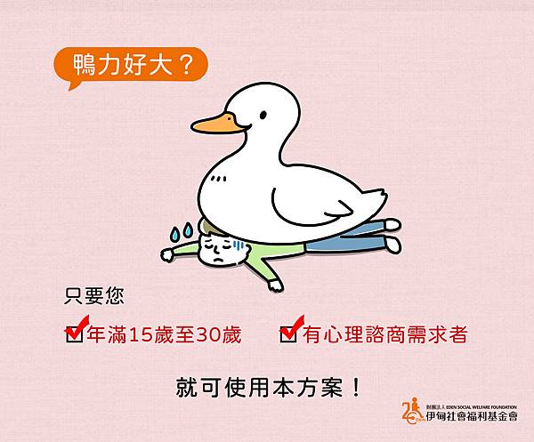 政府規劃15~30歲年輕族群一年有三次的心理諮商補助,若您有需要,鼓起勇氣試試,說不定會是一切事物的轉機哦!