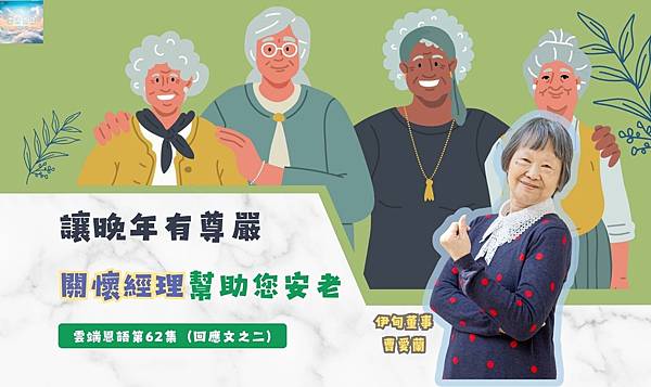 有一天,如果您的兒女不在身邊,您的老伴先走ㄧ步,您覺得孤單無助,更擔心萬一失能、失智來臨,生命中最後ㄧ哩路,如何確保生命尊嚴呢?