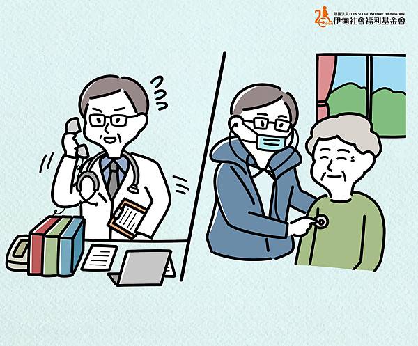 「一些貧窮的,一些家裡面沒人照顧的,我們去關心他們。醫生到家裡面訪問他們;我們居服員去幫他們洗澡、剪指甲、洗衣服等等,讓他們感受到人間有愛。」
