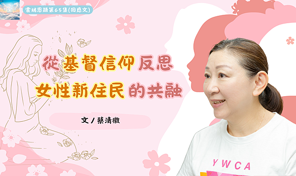 教會不該只是傳講救恩的地方,更應是活出新生命的群體。既使新住民在別的地方受到排擠或輕看,但她們總能在教會找到一個願意以基督的眼光平等對待她們的地方。當我們看見身旁的姊妹正承受著社會的冷漠與制度的暴力時,我們能否像耶穌一樣,主動走向井邊的撒馬利亞婦人,坐下來說:「妳的故事,我願意聽」?我們是否也能說出:「妳不是孤單的,妳的生命有價值,妳的聲音值得被聽見」?